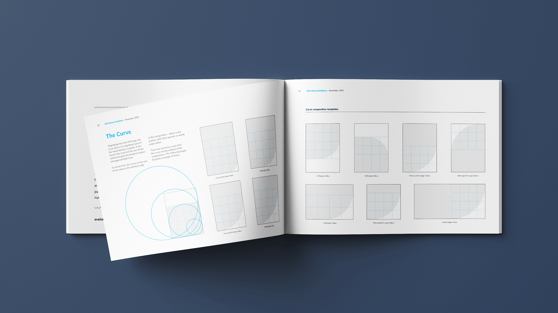 The new identity is based on a curve. This draws draws inspiration from the bend in the road, the wheel’s turn, and, most importantly, the MTA logo’s rounded corner. The existing MTA logo has been around for many decades and has strong public recognition. Using the existing brand blue, with this curve, was the springboard to creating a friendly and dynamic aesthetic that played on this existing brand recognition.